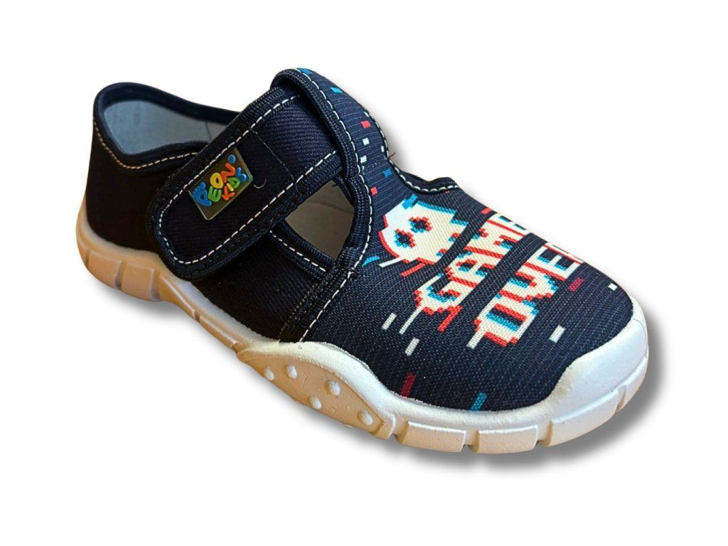 Dětské bačkory PEON, Modré Game Over